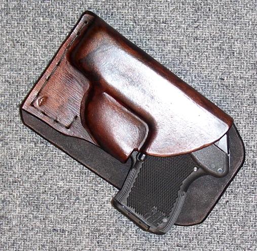 "Demi" of DDP wrote to me: "Only one person had a problem with these holsters coming out with the pistol. Turns out that he was casually pulling the gun out, not drawing it as though his life depended on it. When your fingers slide in to grasp the hilt of the gun in these pocket holsters, the back plate is pushed out and locks the holster into your pocket. This also clears the trigger guard from the hard molded socket, letting the pistol slide freely out." That works for me!