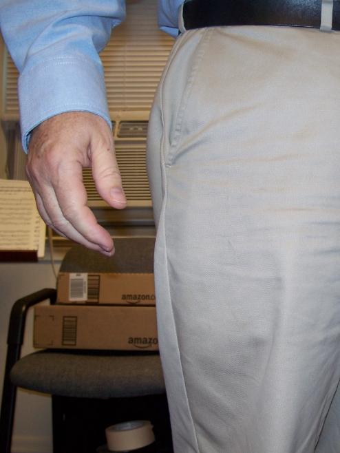 And finally here's a photo of me, with the holster and gun in my pocket. As you can see, it is really well concealed. If the outline of the holster is noticed by anyone, it appears rather rectangular and boxy, and not like a gun. It looks more like an Ipod or some sort of personal computer.