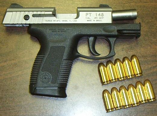 Another similarity between the Kel-Tec P11 and the Taurus PT145 is that both have magazines that hold ten rounds. It is amazing to me that the PT145 can hold eleven rounds of .45 ammo, yet have a very comfortable and fairly short grip.