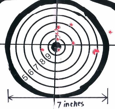 As you can see, 8 out of 12 were in a three-inch group in the center of the target. The other four may be chalked up to my need to give a little more concentration to that long double-action trigger!