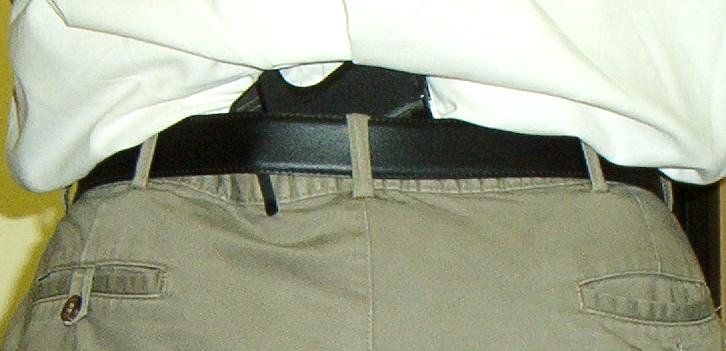 The P11, carried this way, is light and easy to get used to. I insert the clip between my pants and my belt, which makes it even less noticeable. When I'm wearing a sport jacket, it is completely invisible, but easy to reach and pull free.