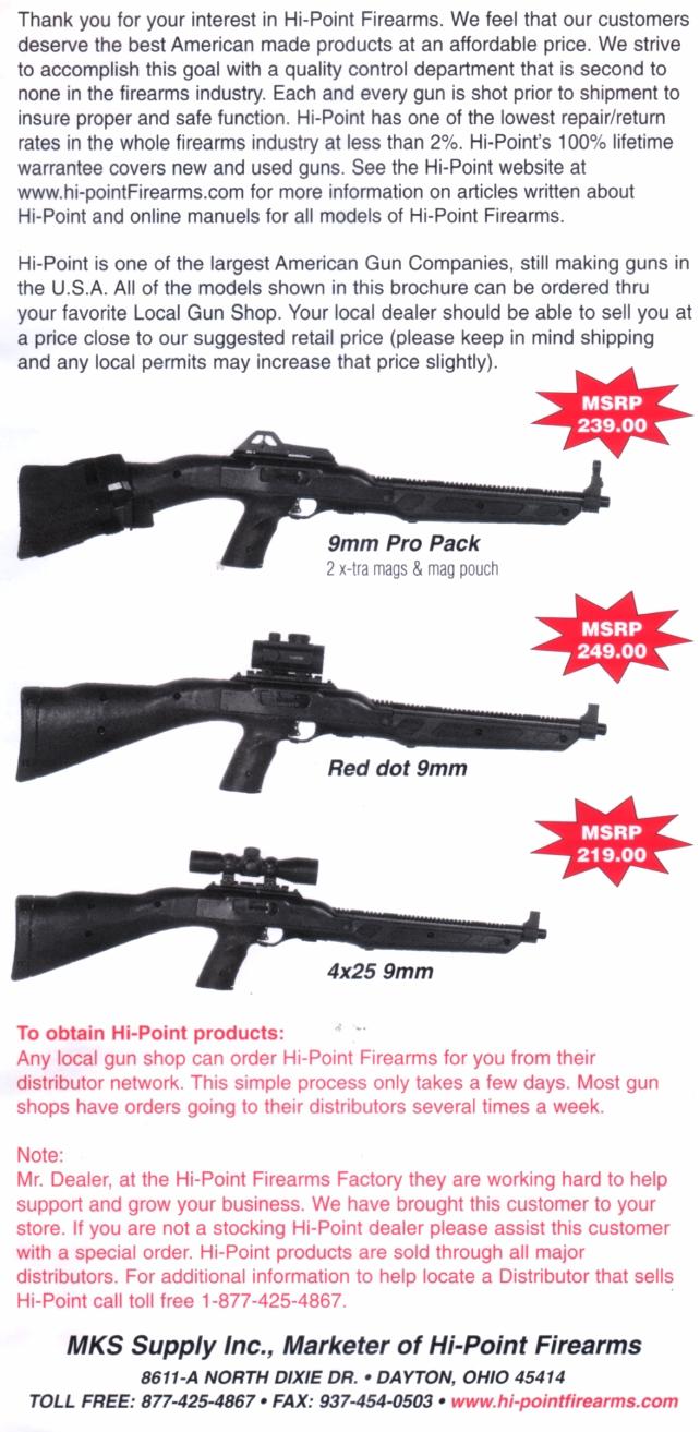 I received this in the mail from Hi-Point in November of 2006.