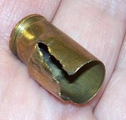 Wow! So I looked a little closer at his brass, and guess what?! He had been trying to shoot 40S&W out of his .45! Well, his gun was OK, and no one got hurt, so I guess we all learned a valuable lesson.